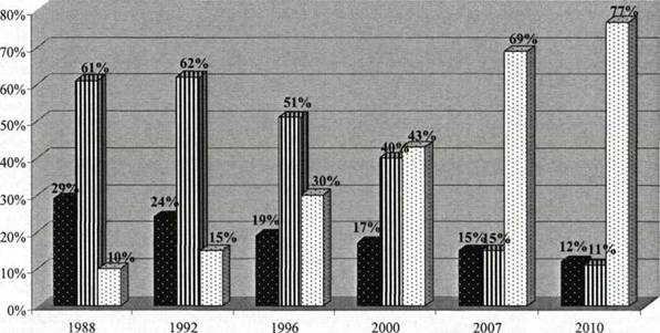 Рисунок № 4 отражает основные изменения в структуре поступления средств в бюджет Союза в период с 1988 по 2010 годы.