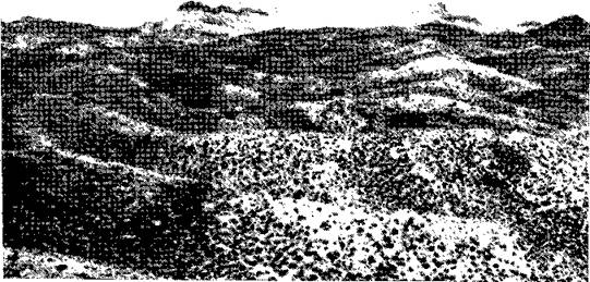 Обширная, идеально выровненная центральноиранская пустыня Деш- те-Кевир лежит на высоте 800 ж. Здесь, за исключением участков, совершенно лишенных растительности или покрытых солевой коркой, распространены галофиты Halocnemum Strobilaceumi Salsola arbuscula или Halo- xylon aphyllum, Salcola richteri, виды Tamarix и др. (рис. 141). Южнее расстилается песчаная пустыня Деште-Лут. На рыхлых песках развиваются виды Caligonum и Haloxylon persicum (рис. 142), на песчано-гравийных грунтах — кустарнички из маревых, например Salsola rigida, Ephedra Strobilaceai Artemisia и др. (рис. 143). На глинистых почвах растительность более разрежена, преобладают эфемеры, но распространены и Poa bulbosa и Carex pachystylis', Cousinia представлена несколькими видами, полукустарники растут только поодиночке. Не столь уж редки в Иране лишайниково-водорослевые такыры (ср. стр. 208) [88] [89]. Эти типы растительности мы подробнее опишем в разделе, посвященном Средней Азии. Финиковая пальма, распространенная в Иране в зоне побережья Персидского залива и Индийского океана, в пределах песчаной пустыни Деште-Лут заходит далеко на север и достигает приблизительно 34° с. ш. [90] Рис. 141. Окраинная часть солончаковой пустыни восточнее Кума (Иран) с видами Salsola и тамариском (фото Габриэля). Рис. 142. Область песков в Хорасане (Иран): кустарник из Haloxylon рег- sicum', A rtemisia и два заметно выделяющиеся экземпляра высоких зонтичных — Dorema ammoniacum (фото Габриэля). В Афганистане смешиваются разные типы растительности. Северная его часть непосредственно продолжает зону среднеазиатских полупустынь и степей, в южную — вклиниваются иранские пустыни и кустарничковые полупустыни; на востоке расположен ареал индо-гималайских лесов и синдских сухих саванн; северо-восточный сектор принадлежит области высокогорных пустынь Памира, а всю центральную часть страны занимают степи с аридным горным климатом, напоминающим климат центральной Анатолии *. 1O. H. Volk, Klima und Pflanzenverbreitung in Afghanistan, «Vegetatio», 5/6, 1954, S. 422—433; И. А. Линчевский, А. В. Прозоровский, К познанию растительности Афганистана, «Вот. ж.», 29, № 4, стр. 114—123. Рис. 143. Песчаная пустыня на высоте 2200 м с единичными деревцами Pista- cia khinjuk, подушками Acantholimon и Artemisia', местность Серхад, Иран (фото Габриэля). Детальный обзор растительности засушливых территорий Азии мы начнем с характеристики семиаридной степной области северного Казахстана, служащей непосредственным продолжением пояса степей Восточной Европы.