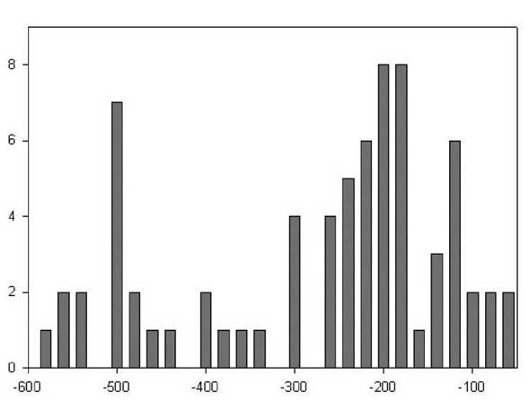 Рисунок 6.1. Активность храмового строительства в Риме в 600-50 гг. до н.э. (Richardson 1992).