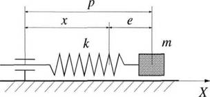 В силу сложности рассматриваемой проблемы, до сих пор не было получено какого-либо аналитического решения задачи для простейшего однозвенного упругого манипулятора. Существует аналитическое решение для линейной одномассовой упругой системы с одной степенью свободы [380]. Такая упругая система изображена на рис.3.5. Положение упругой массы р определяется в виде суммы управляемой координаты х и упругого перемещения е. Привод расположен в поступательной кинематической паре.
