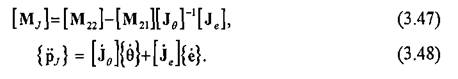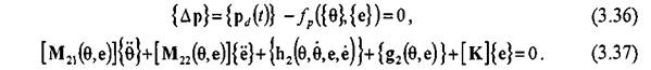 -невязка кинематического ограничения на положение рабочего органа в пространстве (отклонение рабочего органа манипулятора от заданной траектории). Отсюда решение обратной задачи кинематики должно удовлетворять уравнению геометрической связи (3.36) при одновременном удовлетворении условию динамического равновесия упругого движения манипулятора (3.37).