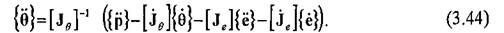 Для вычисления упругих перемещений в явном виде на каждом шаге интегрирования, выразим ускорения присоединенных углов в сочленениях через ускорение рабочего органа на траектории через выражение (3.41) в виде