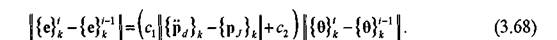 3) . Получив вектор присоединенных углов в сочленениях {θ}'и вектор упругих перемещений звеньев манипулятора {e}lkна текущей z-той итерации вычисляем ошибку в положении рабочего органа манипулятора как невязку кинематического ограничения (3.36)