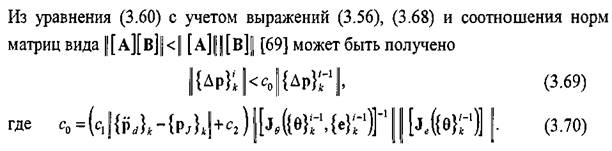• Выражения (3.65), (3.66) показывают, что сходимость метода тем хуже, чем выше степень нелинейной зависимости членов уравнения упругого движения манипулятора (3.34) от присоединенных углов в сочленениях.