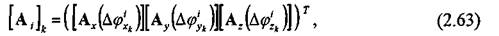 глобальной системы координат. Эти кинематические параметры позволяют учесть большие перемещения и повороты узла. По мере сходимости итераций к решению системы нелинейных уравнений (2.38) приращения перемещений
