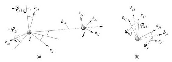 значно определены тремя глобальными координатами и тремя углами Эйлера [89, 180], задающими ортогональное преобразование вращения в пространстве. Углы Эйлера не обладают свойством коммутативности и поэтому не могут содержаться в векторе узловых перемещений системы