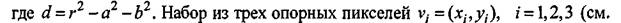 гой окружности, заданной опорными пикселями 1, 2, 3, и произвольным пикселем viрассчитывается как