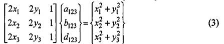 возможной окружности. Эта система уравнений в матричной форме имеет вид