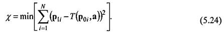 В общем случае, для нахождения минимума (5.24) можно использовать метод Левенберга-Марквардта. Однако предпочтительней линеаризовать выражения (5.22), (5.23) относительно вектора параметров а, помножив левую часть выражений на знаменатель дроби из правой части. Полученную линейную систему можно решить классическим методом наименьших квадратов.