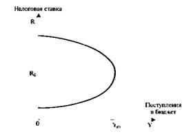 Поступления чистых налогов в бюджет Y,,, растут по мере увеличения совокупной налоговой ставки R только до момента достижения налоговой ставкой некоторой оптимальной величины Д (которой соответствует Ym), затем поступления в бюджет начинают уменьшаться. Это происходит потому, что по мере увеличения совокупной налоговой ставки остающийся у предпринимателей чистый предельный доход резко уменьшается Поэтому его равенство с предельными издержками достигается при меньшем, чем прежде, объеме производства, К тому же при увеличении налогов многие предприятия, бывшие прежде рентабельными и конкурентоспособными, оказываются убыточными. Уклонение от уплаты налогов становится для многих из таких предприятий единственным способом выживания. О том, что совокупная налоговая ставка в России в 1990-х годах превышала оптимальную ставку, свидетельствует факт увеличения сбора подоходного налога при переходе с января 2001 г. на единую 13%-ную ставку