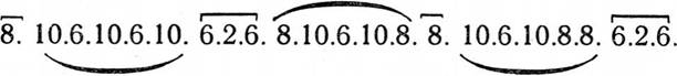 названием: "Метро-тектоническое разрешение проблемы музыкальной формы"). Однако музыкальная Москва хорошо знакома с его теорией по его многочисленным докладам и выступлениям. О ней необходимо говорить отдельно, не в этом кратком изложении, преследующем лишь логические цели. Для тех, кто не знаком с теорией Г. Э. Конюса, я только приведу один пример из сотен пьес, проанализированных им в течение многих лет. Это - анализ антракта d-moll из "Кармен" Бизе (цифры обозначают количество тактов).