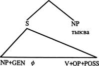 В поисках объяснения этого явления Андерхилл прежде всего замечает, что, если подлежащее в предложении типа (б) понимается только как неопределенное, оно обязательно ставится непосредственно перед глаголом. Если подлежащее толкуется как определенное, позиция перед глаголом для него факультативна. На основании этого Андерхилл считает, что к неопределенным подлежащим еще до построения ОК применяется правило перемещения неопределенной ИГ. К определенным подлежащим, уже после построения ОК, может факультативно применяться правило «перемешивания»1. Далее, Андерхилл полагает, что генитивное оформление ИГ — результат действия правила трансформационного цикла, то есть что в глубинной структуре эти ИГ не оформлены показателем падежа. Исходя из этого, он формулирует следующий принцип: если мишенью при построении ОК является имя без падежного оформления, выбирается СП, в противном случае выбирается ОП.