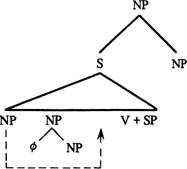 В момент построения ОК эта генитивная ИГ, по Андерхиллу, еще не оформлена показателем падежа. Снова совершенно справедливо предсказывается выбор СП.Случай I. Мишень — подлежащее