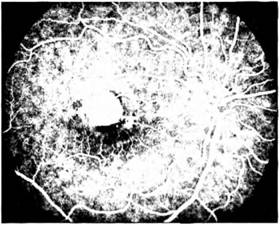 високою швидкістю фотографування (наприклад, фундус-камеру F450 фірми «Zeiss»). Контрастовані флю- оресцеїном судини на позитивних фотознімках мають вигляд світлих смут на тлі очного дна, на негативах спостерігають протилежну картину.
