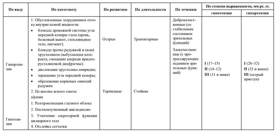 Классификация нарушений офтальмотонуса травматической этиологии