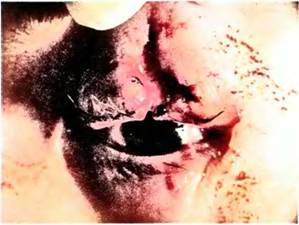 Мал. 17.18Ляжке вогнепальне поранення очної ямки із повним руйнуванням додаткових структур ока й очної ямки