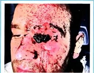 Мал. 17.15. Поєднане наскрізне поранення повік і лицевої ділянки