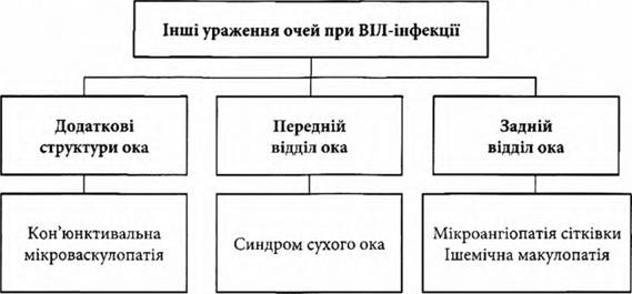 Схема 16.11. Інші (що їх не класифікують) ураження органа зору при ВІЛ-інфекції