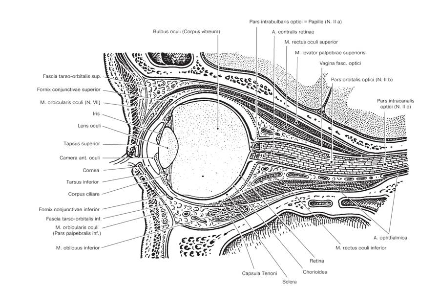 Рис. 4. Сагиттальный разрез через глазницу (по: Axenfeld Th., 1980).