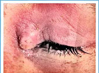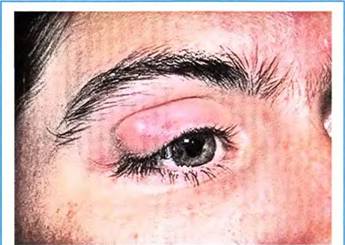 Клінічна картина. Характеризується гіперемією, щільним болючим набряком шкіри з опущенням повіки, значним набряком кон’юнктиви, припухлістю і болючістю регіонарних лімфатичних вузлів. Можливе мимовільне розкриття абсцесу.