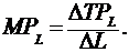 Предельный продукт (MPL)– кол-во доп продукта, полученное при исп дополнительной единицы переменного фактора.