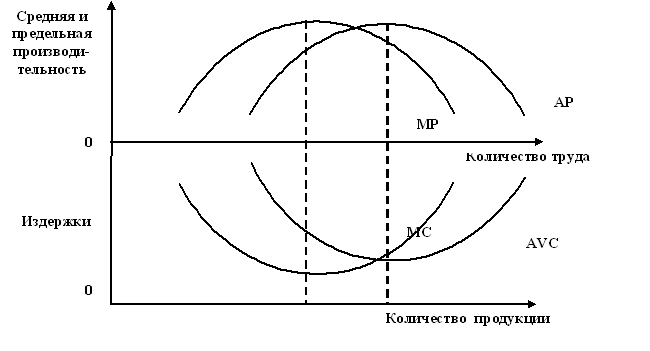 В случае возрастающей производительности средние общие издержки уменьшаются (см. переход от АТС1, к АТС2 на рис. 62) при убывающей производительности — растут (переход от АТС3 к АТС4).
