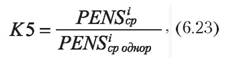5. Рівень ефективності впливу системи ІІ рівня на пенсії. Індикатор має відображати вплив пенсійних інвестицій на статки пенсіонерів. Індикатор є стимулятором. Обраховується як відношення середніх пенсій однорівневої та дворівневої систем: