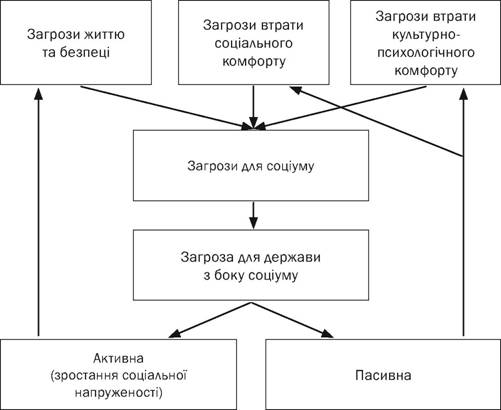 • загрози державі з боку соціуму, коли соціум є джерелом загроз.