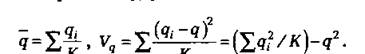 Если мы обозначим через qt частоту гена в і-й группе (р, = = qt = 1), а через q — частоту этого же гена в подразделенной популяции как в целом, то характерные для нее средняя частота гена и ее варианса будут