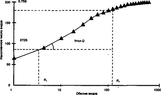где пг — общее число видов с обилием В; S — общее число видов в выборке; Rl, R2 — нижний и верхний квартили; пт— число особей в классе, соответствующем R1; — число осо