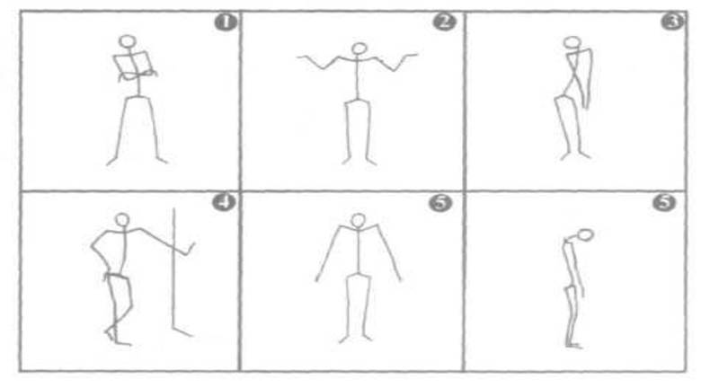 Завдання 2. Визначте, якому стану людини відповідають пози на рисунку11. 1) Несміливий, винний, вбитий горем; 2) зверхність, зневага, самовпевненість; 3) очікування; 4) розгубленість, нерозуміння, сумніви; 5) сором’язливість, печаль; 6) здивування, нерішучість.