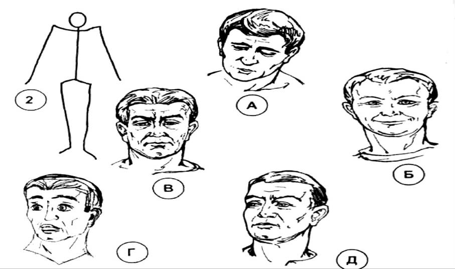 Завдання 3. Підберіть до схематично зображеної пози на рисунках 3, 4, 5 відповідний до неї вираз обличчя (не більше одного вибору).