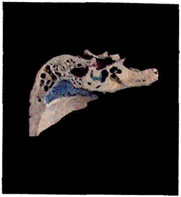 95. Схема направления нистагма при ускорении Кориолиса (стрелками показано движение эндолимфы во взаимно перпендикулярных полукружных каналах).