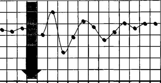 Рис. 18. Динамика пульса у новорожденных детей в ответ на внутримышечную инъекцию лекарственного препарата.