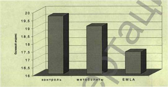 18). Было выявлено, что периоды наибольшей дискоординации гемодинамических параметров приходятся на момент инъекции, 5 и 10 минуты и далее 35-40 минуты после воздействия. У всех новорожденных было отмечено учащение пульса в момент укола, причем в подгруппе сравнения учащение ЧСС было наиболее выражено и отмечен эффект рикошета, когда после повышения частоты пульса следует его урежение, что связано с ответной сосудистой реакцией и влиянием вегетативной нервной системы.Учитывая, что в неонатологии применяется небольшое число методов лечения острой процедурной боли, а неблагоприятные эффекты опиоидных анальгетиков препятствуют их применению у детей раннего возраста, для предупреждения неблагоприятного влияния болевого воздействия при инвазивных вмешательствах у 20 новорожденных детей нами был применен местный анестетик, состоящий из 2,5% эмульсии лидокаина и 2,5% эмульсин прилокаина (препарат EMLA, Astra Pharma). Суммация эффектов лидокаина и прилокаина обеспечила значимый клинический эффект. При применении EMLA нами не было отмечено местного раздражения и отсутствовали явления системной интоксикации.