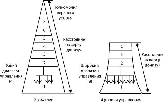 Оптимизация системы организации управления возможна за счет сбалансированного количества вертикальных и горизонтальных