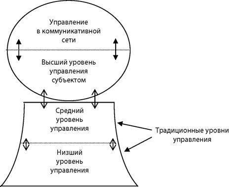 Отмеченный характер перемен в развитии интеграционных процессов в региональном ИСК приводит не только к изменению его организационного построения, но и к смене представлений о системе его управления. Организационное построение регионального ИСК как сети эволюционирует от пирамидальных форм к плоским. Как утверждает ряд авторов[63] [64], такое построение «... будет иметь примерно в два раза меньше уровней управления, чем в настоящее время»[65].