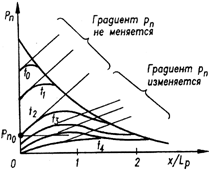 Рис. 3.17. График изменения концентрации носителей в базе при переключении диода