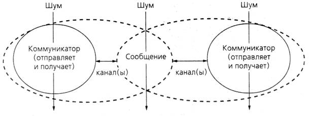 Если первые две модели изображают коммуникацию как ряд дискретных актов, имеющих начало и конец, в которых отправитель по существу детерминирует действия получателя, то трансакционная модель представляет коммуникацию как процесс одновременного отправления и получения сообщений коммуникаторами. В каждый конкретный момент мы способны получать и декодировать сообщения другого человека, реагировать на его поведение, и в то же самое время другой человек получает наши сообщения и отвечает на них. Эта модель позволяет увидеть, что дискретный акт коммуникации трудно отделить от событий, которые ему предшествуют и следуют за ним. Таким образом, коммуникация представляет собой процесс, в котором люди формируют отношения, взаимодействуя друг с другом.