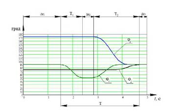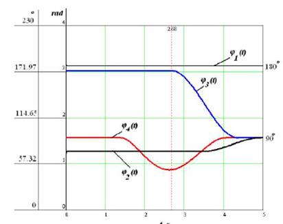 Рисунок 2.20 - Теоретические зависимости углов φ1(t) , φ2(t) , φ3(t) , φ4(t) (сплайн-
