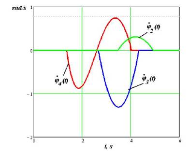 Рисунок 2.21 - График изменения угловых скоростей φ2(t), φ3(t), φ4(t) (сплайн- интерполяция)