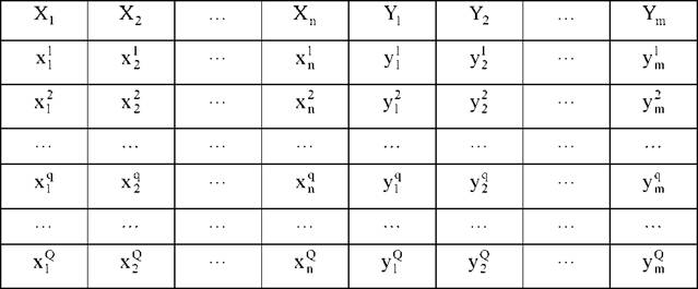 Исходные данные представлены в таблице экспериментальных данных (ТЭД) и один входной образ соответствует одной строке этой таблицы.