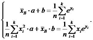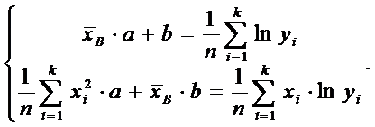 Логарифмируя, получаем: lny=ax + b, и система уравнений для a, b имеет вид: