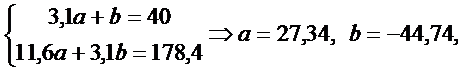 то есть линейная зависи-мость имеет вид: у = 27,34х – 44,74.