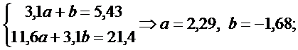 Теперь можно решать линейные системы для а и b: