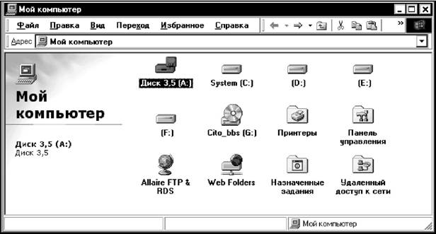 Итак, в окне Мой компьютер содержатся следующие элементы (рис. 11.10).