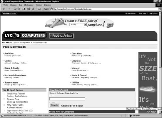 Наиболее популярный сервер такого рода — это DOWNLOAD.COM (www.download.com) (рис. IV.95). Он содержит просто огромное количество ссылок на всевозможные программы.