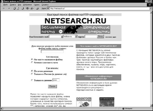 Рис. ІѴ.89. Поисковая система Netsearch.ru на FTP-серверах