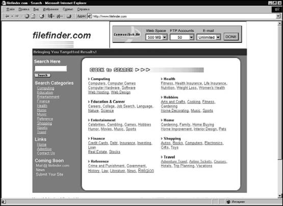 Рис. IV.91. Мощная система поиска файлов Filefinder.com