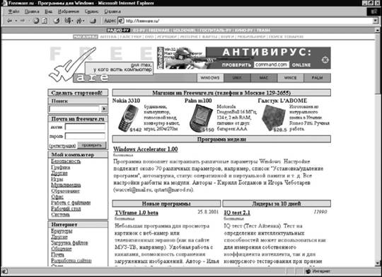 Если программа, которую вы ищете, существует в природе, то с большой долей вероятности вы ее найдете с помощью этого сервера.В русскоязычной части Internet советую воспользоваться сервером Freeware (www.freeware.ru) (рис. IV.96).